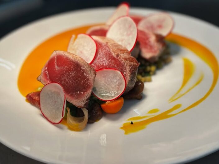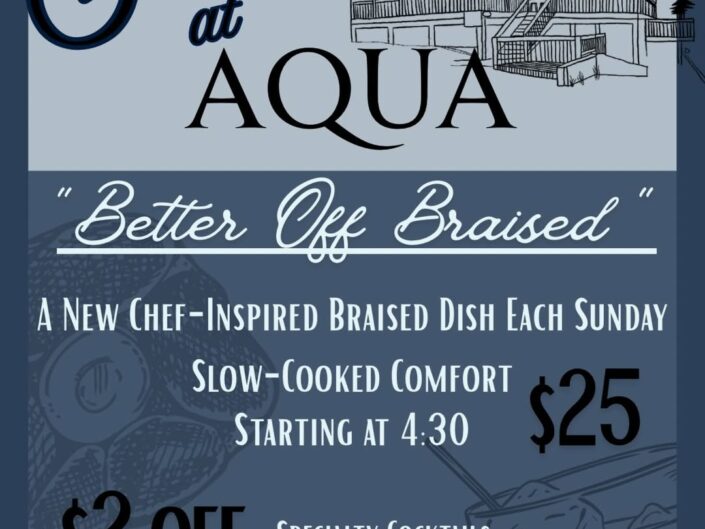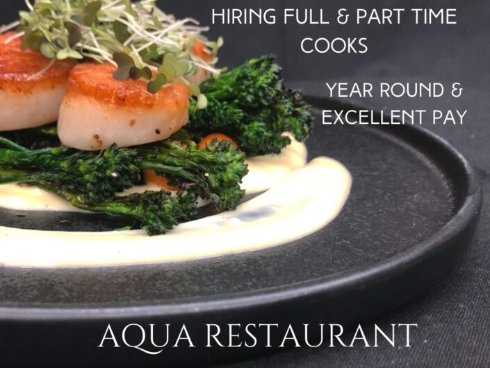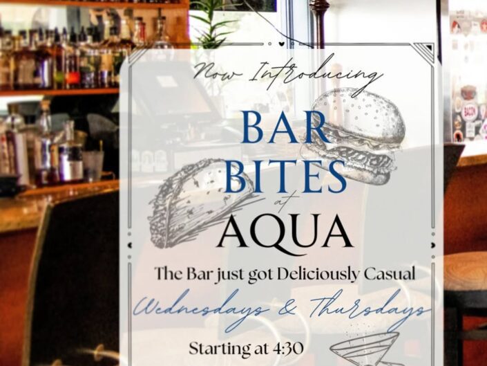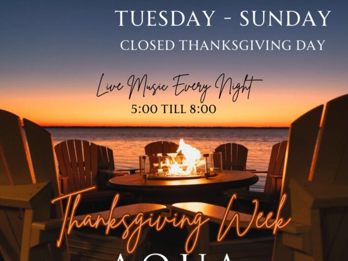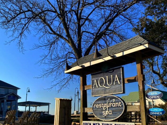 Since 2008, we have applauded our outstanding staff for their commitment to providing an exceptional culinary experience in our casual setting you’re sure to be comfortable relaxing in. Gorgeous sunsets, live music, and good times make AQUA the place where delicious food and beautiful memories happen year-round on the Outer Banks. Our lunch menu has a selection of soups, salads, sandwiches, seafood, and more. At dinner, Chef creates exquisite specialty dishes using local-caught fish and seafood, locally farmed ingredients, and all-natural meats. Carefully chosen innovative wine, craft beer, and specialty cocktails perfectly complement Chef’s savory creations. Our yummy desserts are handmade in house from the freshest ingredients.
