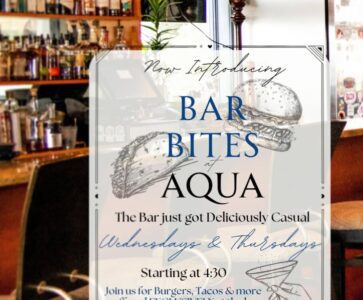 Step away from the dining room and settle into something a little more laid-back. Introducing AQUA Bar Bites...