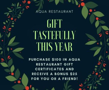 Give the gift of good taste this season 🎁✨ Purchase $100 in Aqua gift certificates and receive a bonus...