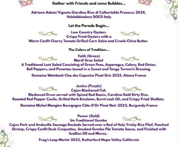 From the French Quarter to the Outer Banks — Five Mardi Gras–inspired courses, each thoughtfully paired...