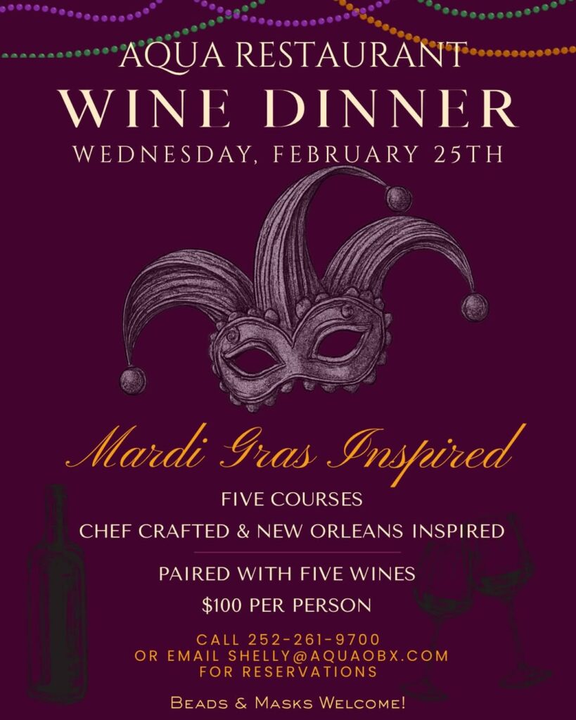 Five Mardi Gras–inspired courses, each thoughtfully paired with wine to highlight the spice, richness, and soul of New Orleans cuisine. Let the good times roll. 🍷⚜️