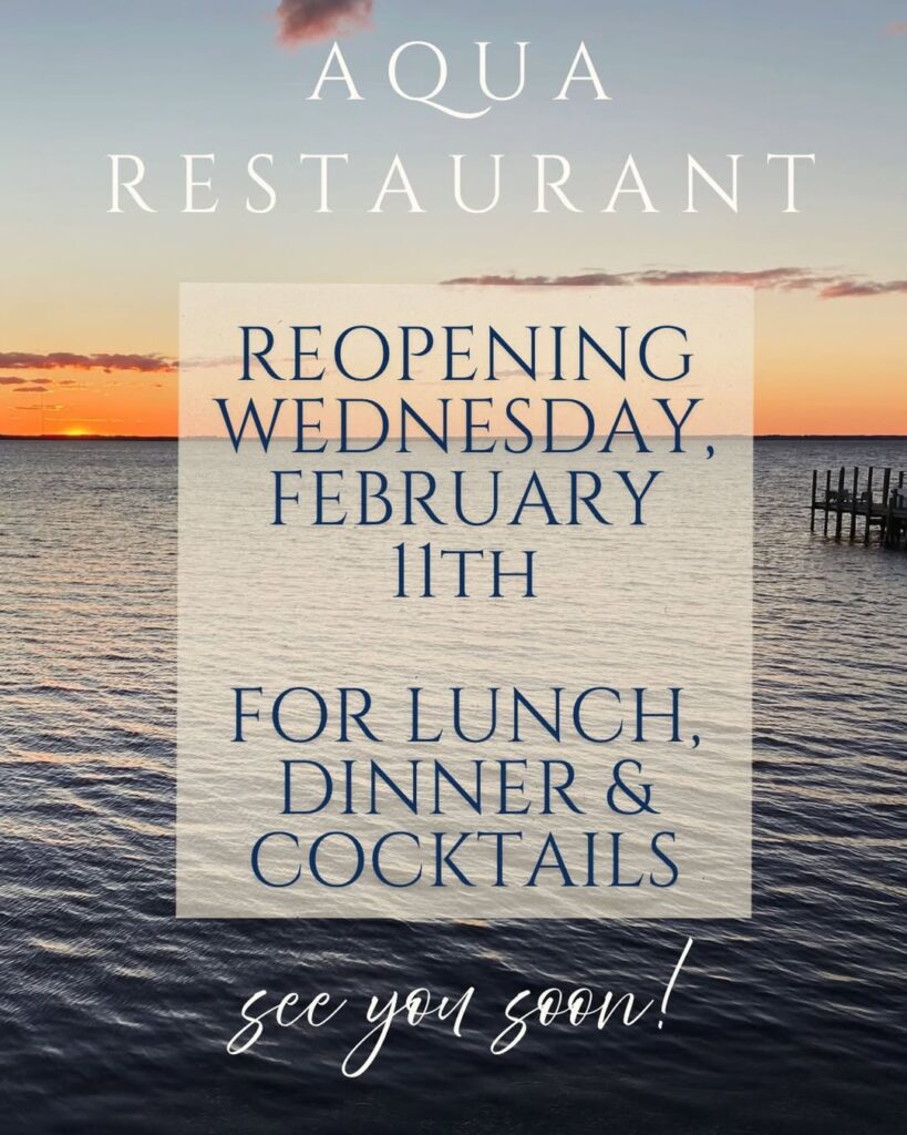 We’re excited to welcome you back to AQUA Restaurant after our Winter Break! We’re reopening on Wednesday, February 11th! Join us for waterfront dining, a relaxing drink & of course – the sunset views. 🌅